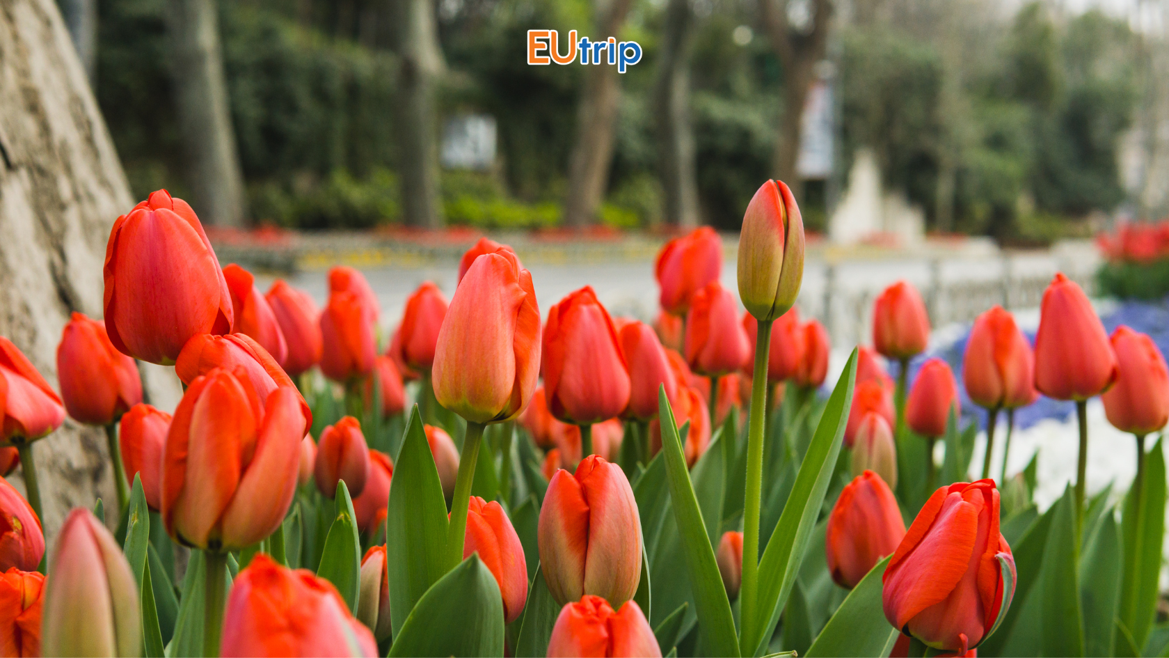 • Công viên và quảng trường phủ đầy hoa, trở thành không gian lý tưởng để đi dạo, nghỉ ngơi và tận hưởng bầu không khí trong lành sau mùa đông dài.